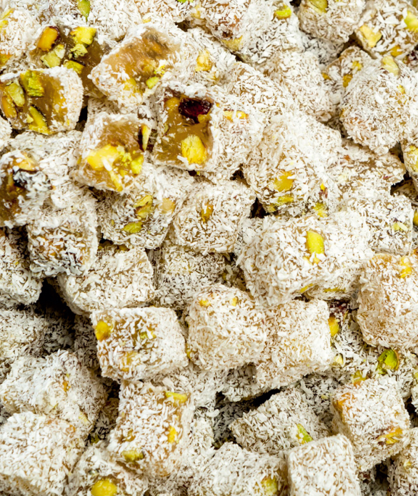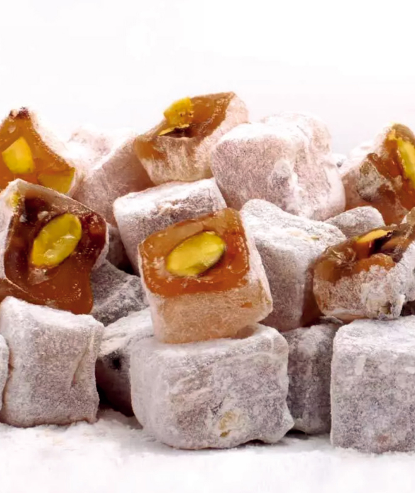 One of the oldest sweets in the world, going back almost 500 years, the Turkish Delight ( lokum in Turkish ) recipe has remained almost unchanged since the day of its inception. Turkish Delight in Turkish is called “ Lokum “ word comes from the Arabic phrase “ rahat ul hulkum “ meaning “comfortable morsel “ or “rest and soothing for the throat”.