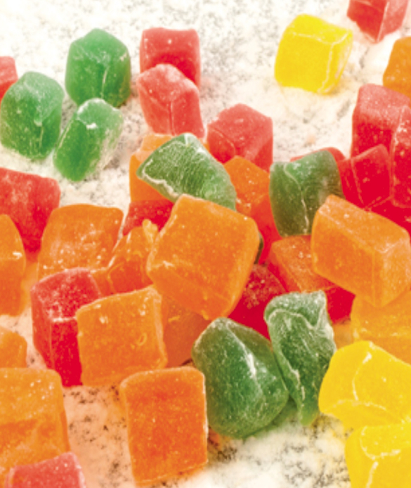 Citric acid and starch are allowed to dissolve in separate containers. Then citric acid and starch are mixed with sugary water. This is boiled for a while. When the spoon is immersed in the mixture, it is checked to see if it has a viscous consistency, it is kept in starchy containers for 20 hours. As a final treatment, it is shaped on a solid surface and packaged.